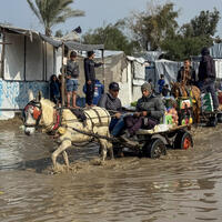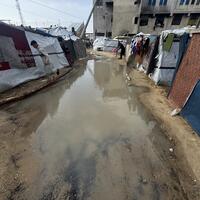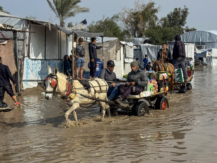 E-huquq.az xarici KİV-ə istinadən xəbər verir ki, yağışlar müvəqqəti çadırlarda yaşamağa məcbur olan minlərlə fələstinli ailəyə ciddi təsir göstərib.