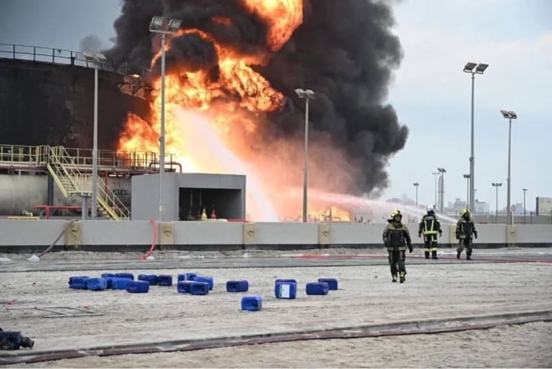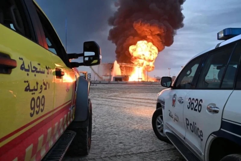 İran ordusunun Bəhreyndə bir obyektdə yanacaq çənlərinə hücumu nəticəsində yanğın baş verib.