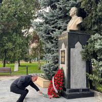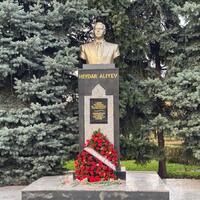 Ziyarət zamanı Ulu Öndərin əziz xatirəsi dərin ehtiramla yad olunub, büstün önünə əklil və güllər düzülüb.