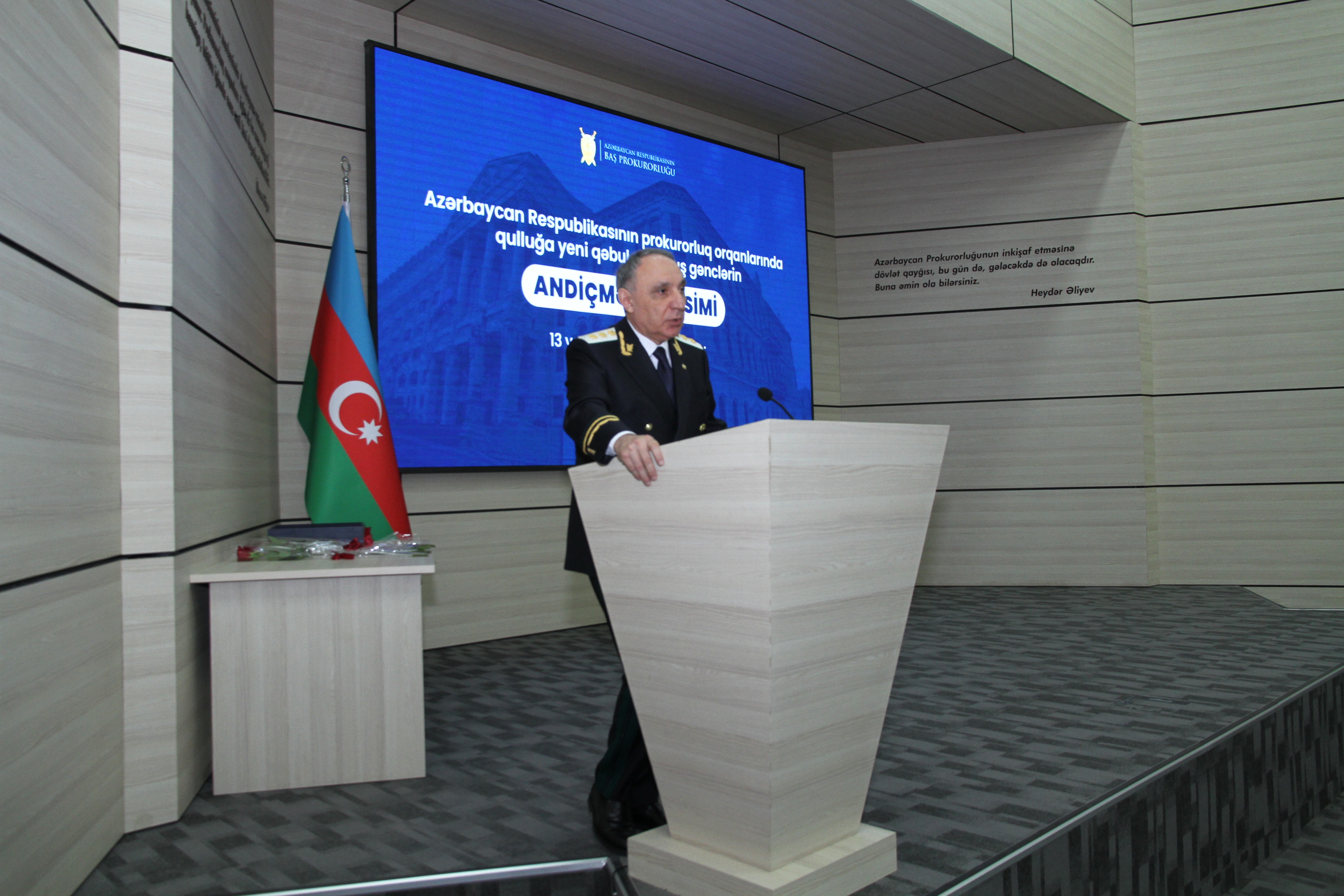 E-huquq.az xəbər verir ki, Baş Prokuror Kamran Əliyev, prokurorluq orqanlarında qulluğa yeni qəbul edilən gənc hüquqşünasların andiçmə mərasimində çıxış edərkən belə deyib.