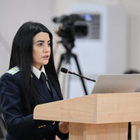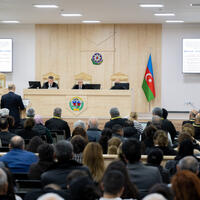 Baş prokurorun böyük köməkçisi Vüsal Əliyev çıxışında bildirib ki, bir ilə yaxın müddət ərzində 100-ə yaxın məhkəmə iclası keçirilib. 500 saatdan artıq müddət ərzində sənədlər və sübutlar tədqiq olunub.