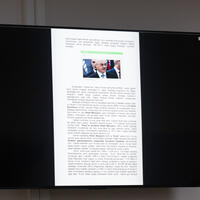 İttiham tərəfinin çıxışları zamanı məhkəmə zalındakı monitorlarda müvafiq fotoşəkillər, xəritələr, rəqəmlər və s. nümayiş etdirilib.
