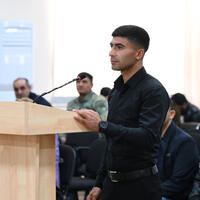 E-huquq.az xəbər verir ki, Bakı Hərbi Məhkəməsində hakimlər Zeynal Ağayevin sədrliyi ilə, Anar Rzayevdən və Camal Ramazanovdan ibarət tərkibdə keçirilən açıq məhkəmə iclasında (ehtiyat hakim Günel Səmədova) təqsirləndirilən şəxs bildiyi dildə, yəni, rus dilində tərcüməçi, habelə müdafiəsi üçün dövlət hesabına vəkillə təmin olunub.