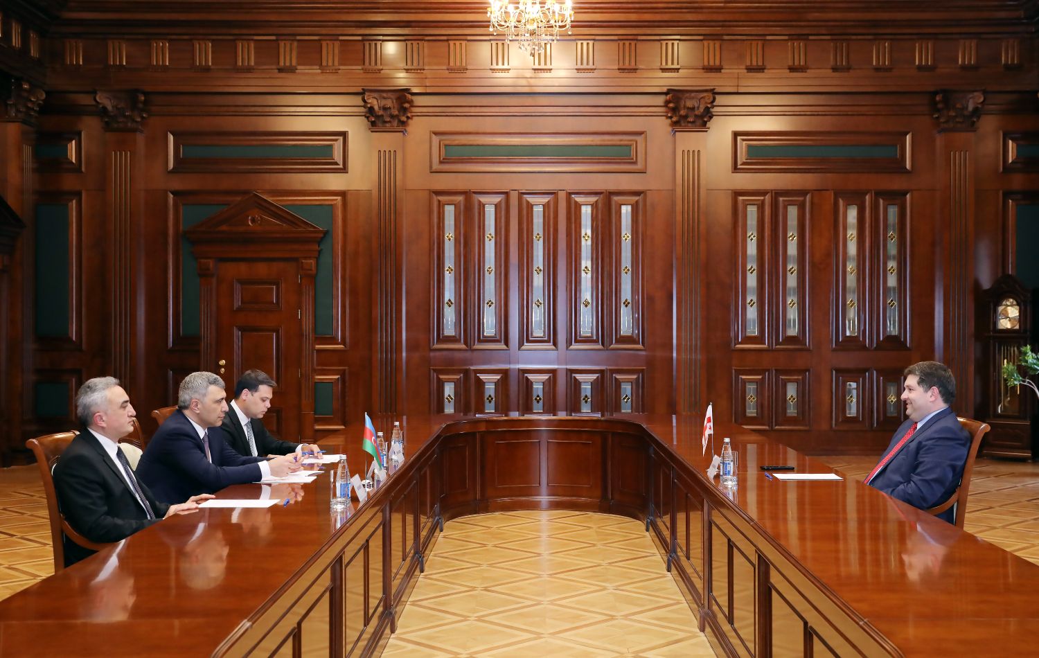 Qonağı salamlayan Ali Məhkəmənin və Məhkəmə-Hüquq Şurasının sədri İnam Kərimov Azərbaycan və Gürcüstan arasında bütün istiqamətlərdə olduğu kimi, hüquqi sahədə də əməkdaşlığın yüksək səviyyəyə çatdığını bildirib. Həmçinin qarşılıqlı səfərlər və təcrübə mübadiləsinin münasibətlərin möhkəmləndirilməsinə mühüm töhfə verdiyi diqqətə çatdırılıb.
