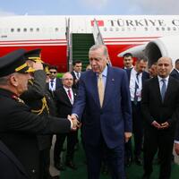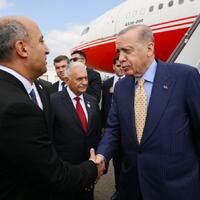 Türkiyə Prezidenti Rəcəb Tayyib Ərdoğanı hava limanında Azərbaycanın elm və təhsil naziri Emin Əmrullayev və digər rəsmi şəxslər qarşılayıblar.