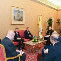 Azərbaycanın xarici işlər naziri Ceyhun Bayramov Vatikana rəsmi səfəri çərçivəsində Müqəddəs Taxt-Tacın dövlətlər və beynəlxalq təşkilatlarla əlaqələr üzrə katibi, arxiyepiskop Pol Riçard Qallager (Paul Richard Gallagher) ilə görüşüb.