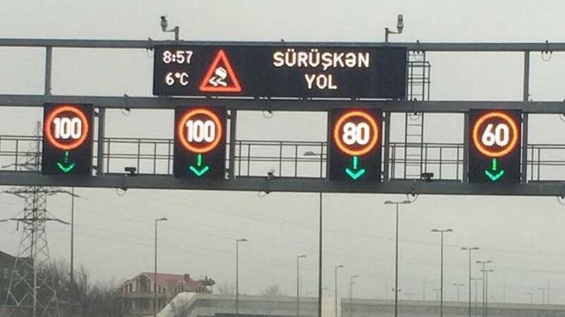 Eyni zamanda bütün tablolarda "sürüşkən yol" işarəsi qoyulub. Sürücülərdən müəyyən olunan sürət həddinə əməl etmələri xahiş edilir.