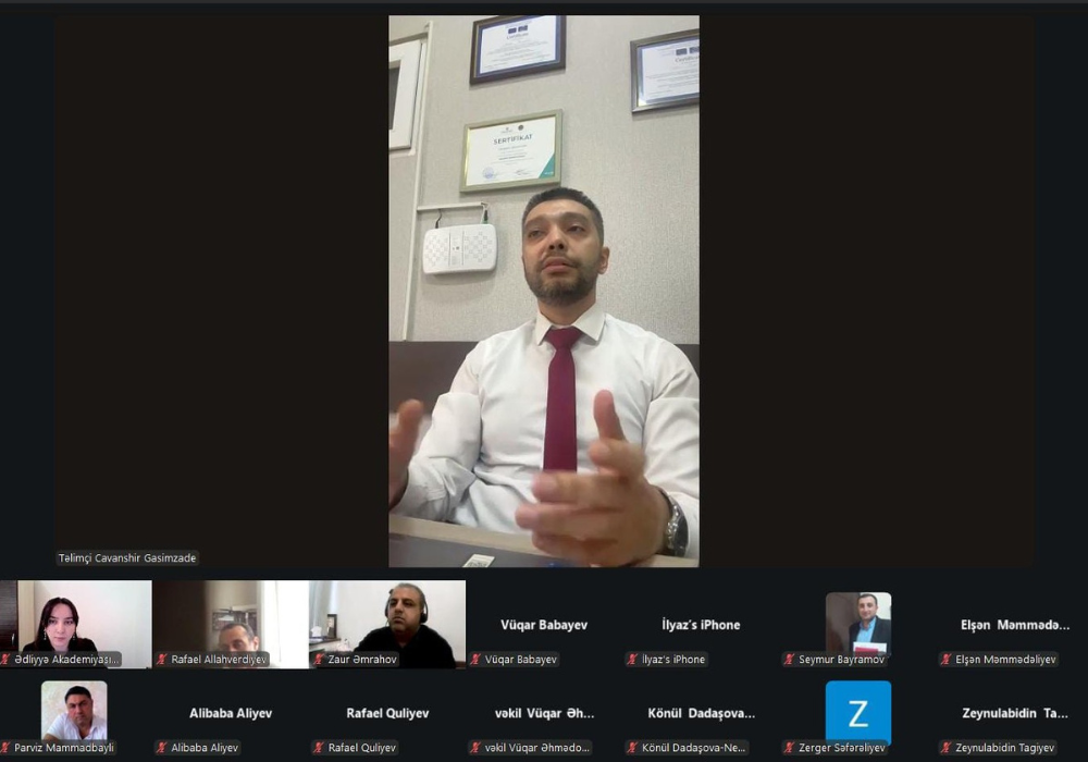 E-huquq.az xəbər verir ki, noyabrın 14-də distant qaydada təşkil olunan VK üzvü Cavanşir Qasımzadə təlimçi qismində çıxış edib.