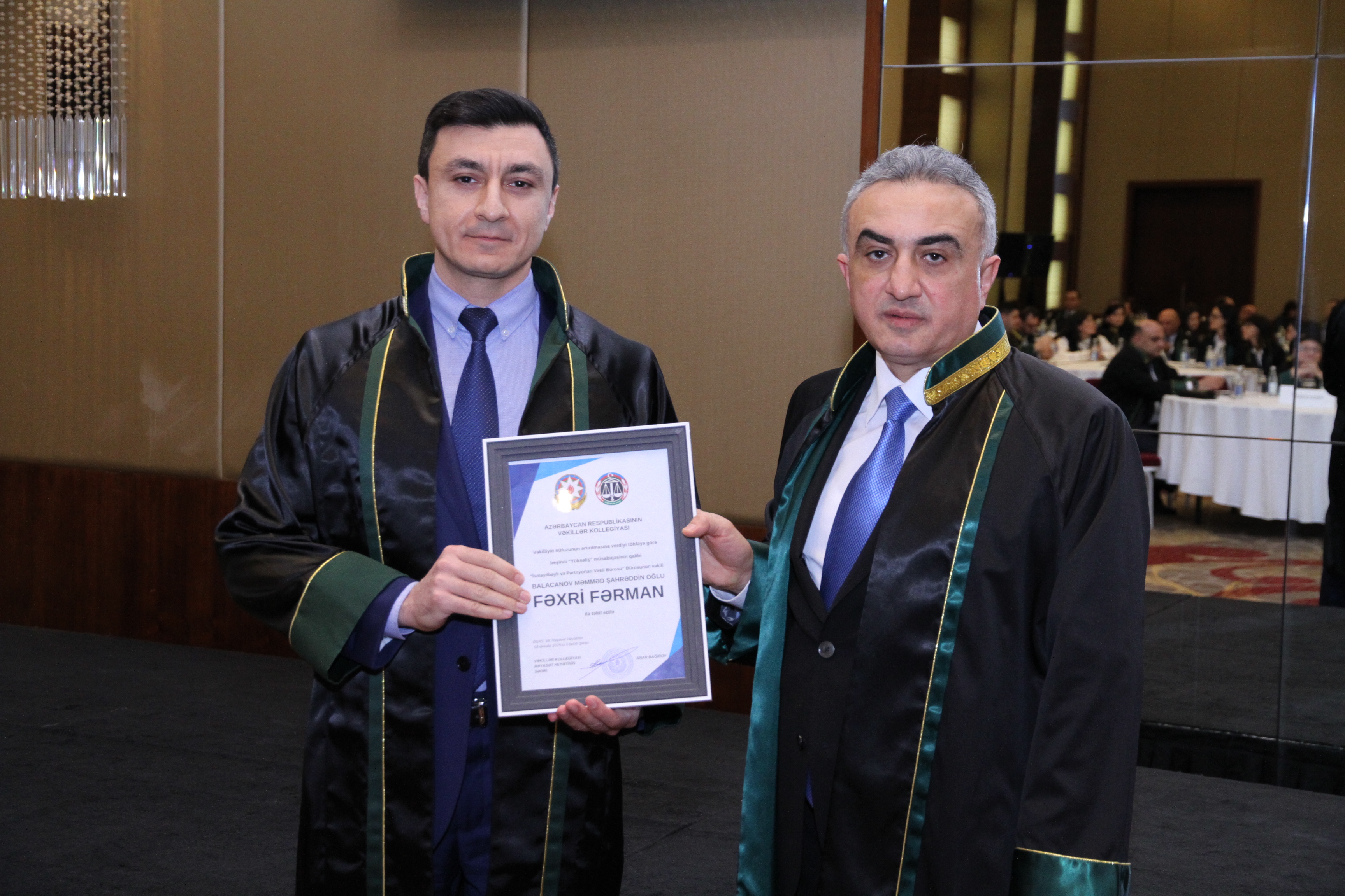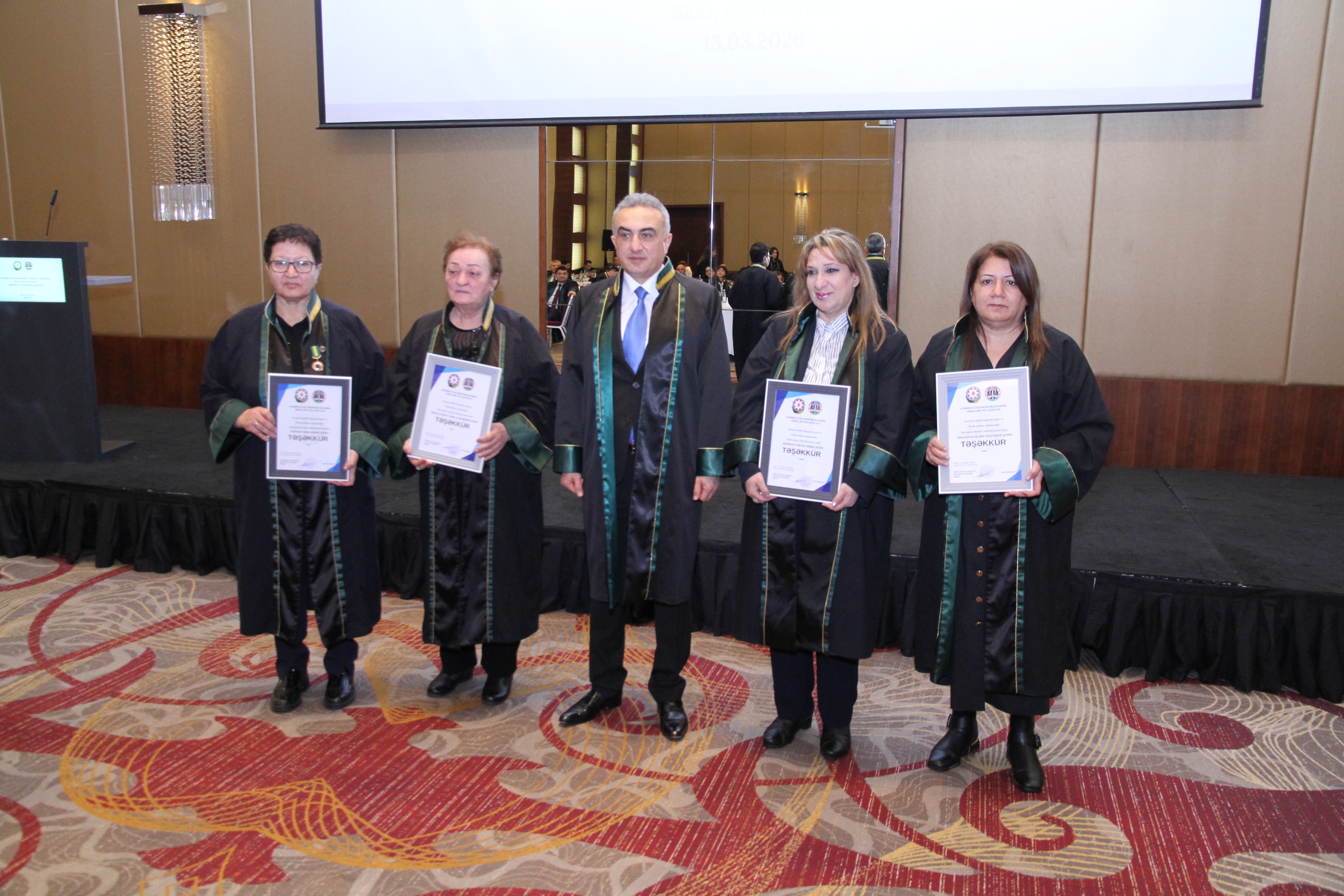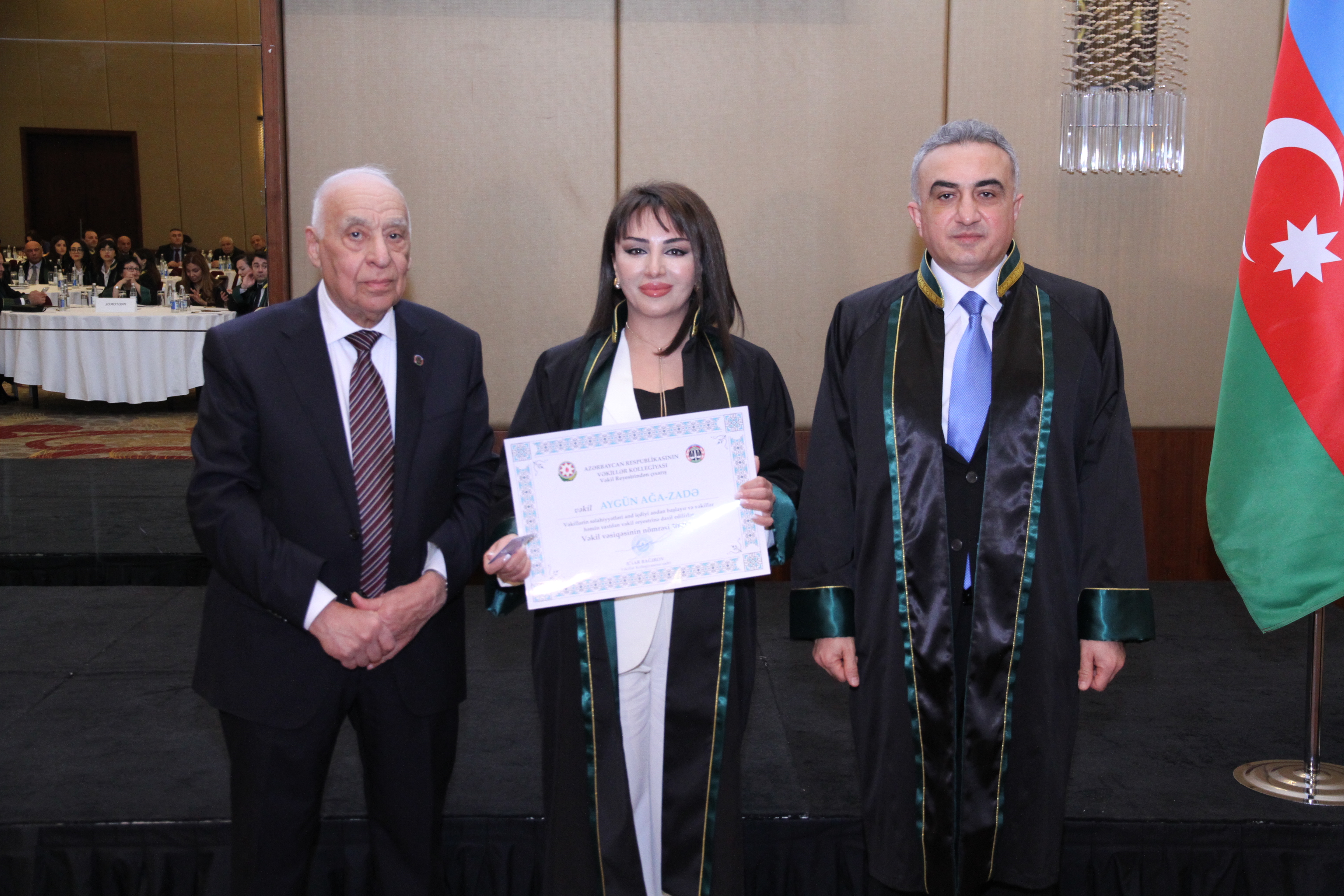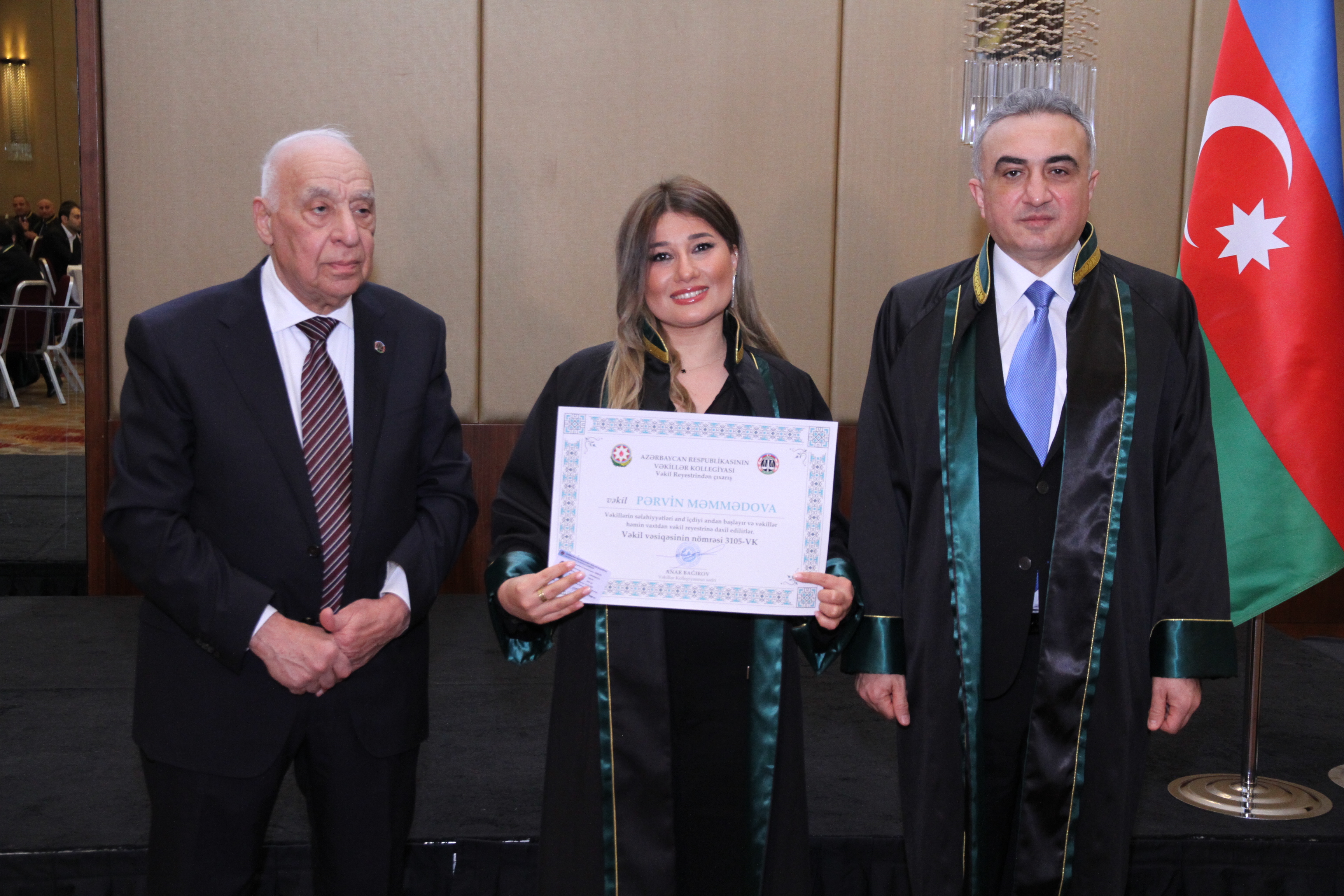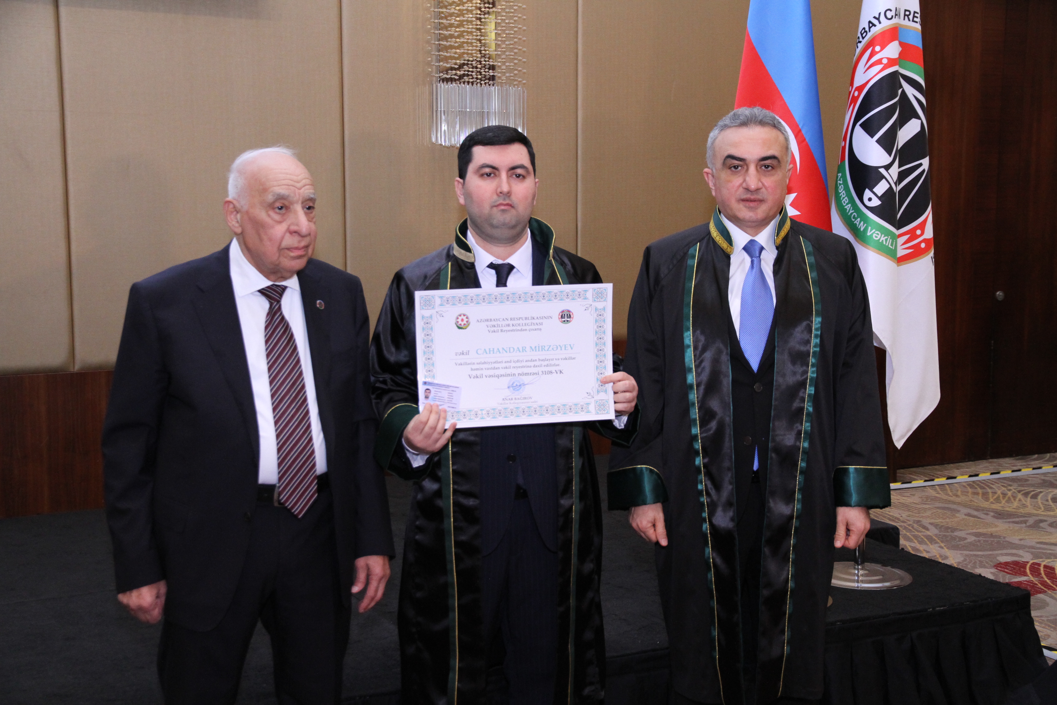 Ardınca vəkilliyə qəbul üzrə ixtisas imtahanlarından uğurla keçmiş, icbari təlim mərhələsini müvəffəqiyyətlə başa vurmuş və şifahi müsahibədən keçərək Kollegiya üzvlüyünə qəbul edilmiş namizədlərin təntənəli andiçmə mərasimi keçirilib. Namizədlər Azərbaycanın Dövlət Bayrağı önündə and içərək vəkil peşəsinin şərəf və ləyaqətini daim uca tutacaqlarına, qanunun aliliyinə sadiq qalacaqlarına və insan hüquq və azadlıqlarının müdafiəsində vicdanla fəaliyyət göstərəcəklərinə dair öhdəlik götürüblər.