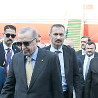 Türkiyə Prezidenti Rəcəb Tayyib Ərdoğanı Azərbaycanın Baş nazirinin birinci müavini Yaqub Eyyubov, xarici işlər nazirinin müavini Samir Şərifov, Türkiyənin milli müdafiə naziri Yaşar Güler və digər rəsmi şəxslər qarşıladılar.