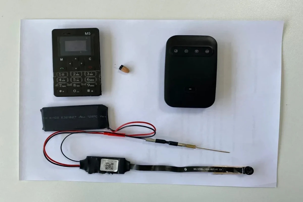 Qeyd edək ki, bu cihazların yerləşdirilməsi üçün altı qalın idman tipli ayaqqabılardan istifadə olunub. Onların alt hissəsi xüsusi alətlə kəsilərək genişləndirilib. Beləliklə kənardan baxılanda ayaqqabının altlığında kənar əşyaların olmasını girişdə müəyyən etmək mümkün olmayıb. Həmin abituriyentlər daha sonra sanitar qovşağa gediblər (qaydalara əsasən imtahan başlayana qədər iştirakçıların təbii ehtiyaclarını ödəməsinə imkan yaradılır). Orada onlar qulaqlığı xüsusi çubuq vasitəsilə qulaqlarına, kameranı köynəyin düymə hissəsinə, ötürücü cihazı xüsusi yapışqan vasitəsilə çiyinlərinə, internet paylacı cihazı isə ayaqqabının daban hissəsinə yerləşdiriblər. Daha sonra sinif otağına qayıdıblar və imtahan başlayandan sonra üzərlərində olan kameranı kitabçaya tutmaqla görüntünü qarşı tərəfə ötürüblər. Qarşı tərəf isə öz telefonunda olan xüsusi proqram vasitəsilə görüntüləri canlı şəkildə əldə edib. Cavablar isə üzərində "vip smart" sözləri yazılmış nazik plastik karta oxşayan və üzərində hər hansı düymə və s. olmayan telefona zəng etməklə bildirilib. Belə ki, kartın üzərində olan nömrəyə zəng gəldikdə avtomatik telefon açılır və zəng edən şəxsin səsi eşidilir.