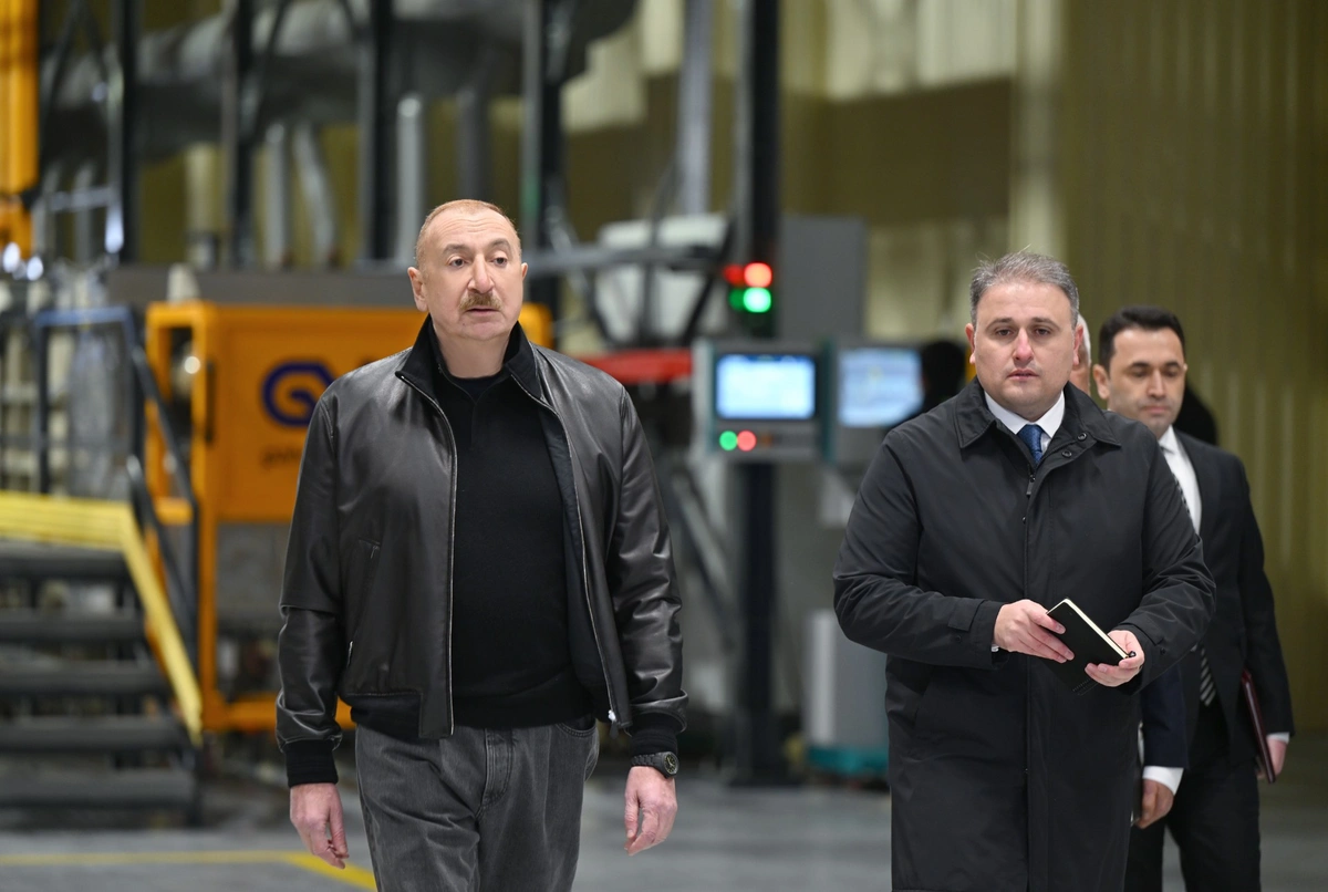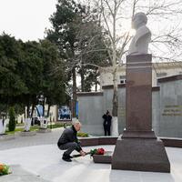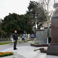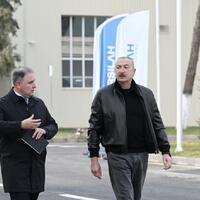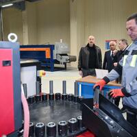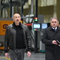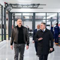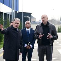 E-huquq.az xəbər verir ki, dövlətimizin başçısı əvvəlcə Ulu Öndər Heydər Əliyevin zavodun həyətində ucaldılmış büstü önünə gül dəstəsi qoydu.