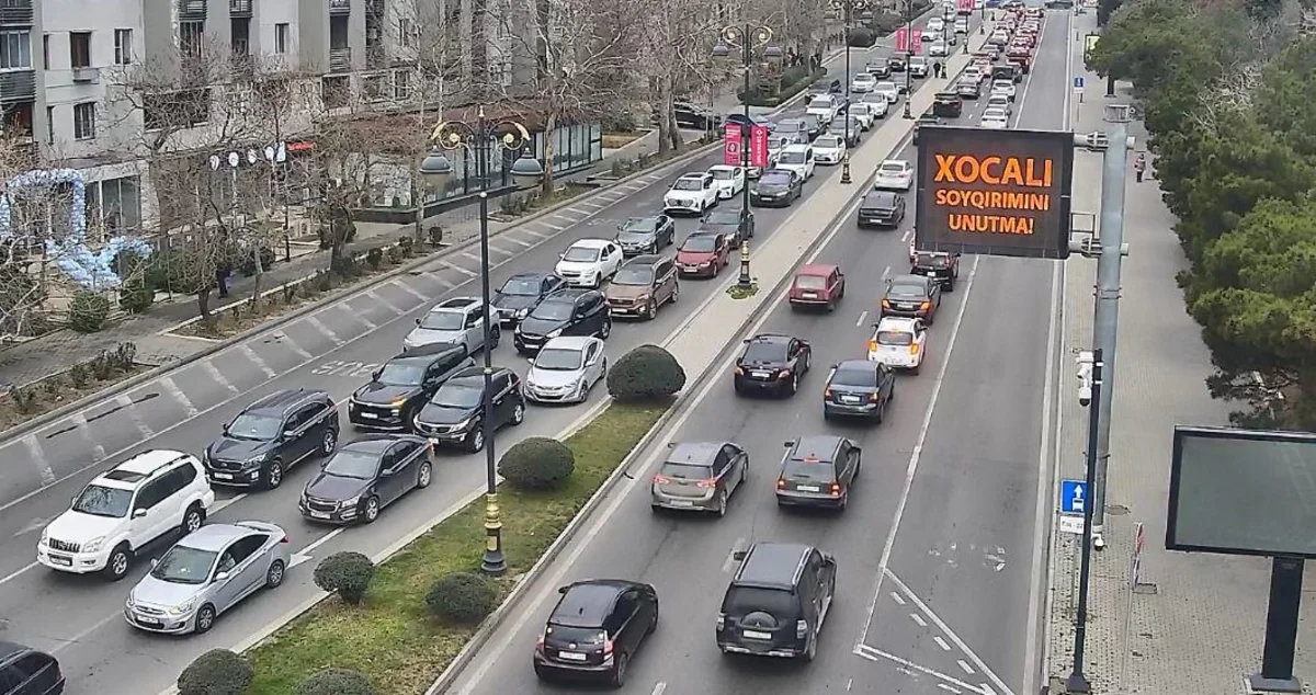 Bakının bir sıra yollarında nəqliyyatın sıxlığı müşahidə olunur.