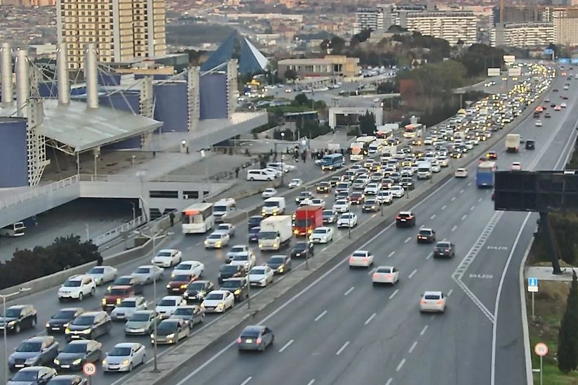 Bakının bir sıra yollarında nəqliyyatın sıxlığı yaranıb.