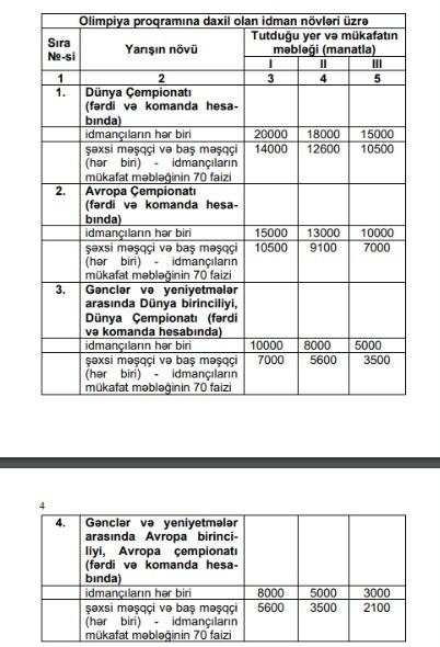 "Report" xəbər verir ki, bununla bağlı Baş nazir Əli Əsədov “Olimpiya Proqramına daxil olan idman növləri üzrə Dünya və Avropa çempionatları və Kubok yarışlarında ən yüksək nəticələr göstərmiş Azərbaycan Respublikasının idmançıları və onların məşqçilərinin mükafatlandırılması haqqında” Azərbaycan Nazirlər Kabinetinin 2000-ci il 24 mart tarixli 57 nömrəli Qərarında dəyişiklik edilməsi barədə Qərar imzalayıb.